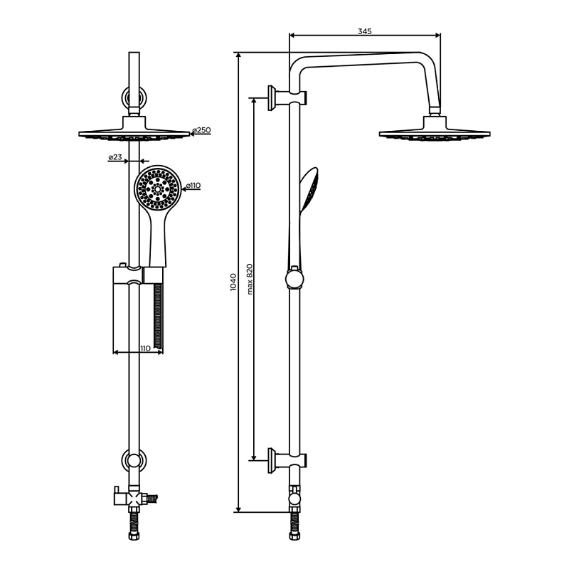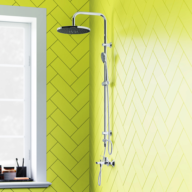 Душевая система Dorff Norma D0710000 стойка с тропическим душем, хром + смеситель для душа, хром