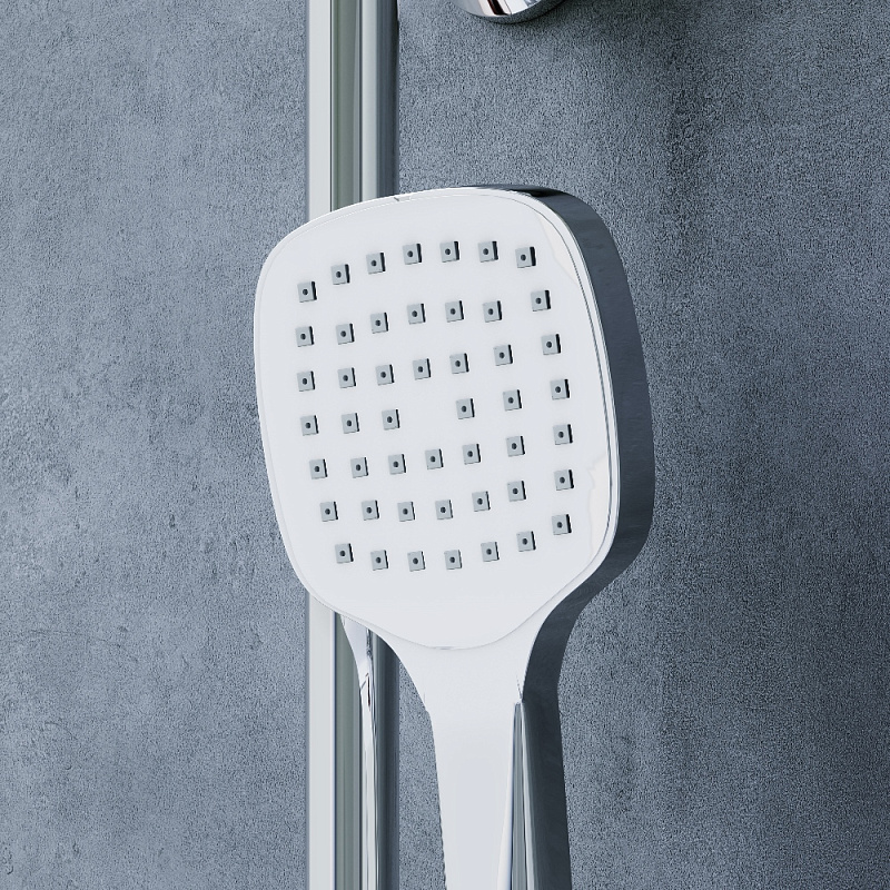 Стильные и большие квадратные лейки обеспечат комфортный напор воды а слайдер ручного душа и крепление верхнего позволит настроить нужное положение.